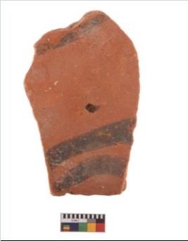 | Description / विवरण | Specimen of potsherd with decorative geometric painting, Type Black on Red ware . |