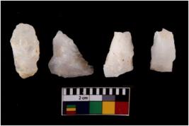 | Description / विवरण | There are n 4 flake cores. All of them are fully fluted flake cores without any trace of crested ridge flakes. Some are tapering at one end and some have sharp edges. |