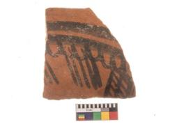 | Description / विवरण | Specimen of potsherd with decorative geometric painting, Type Black on Red ware . |