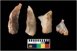 | Description / विवरण | There are n 4 of utilized worked cores.They show multidirectional irregular scar pattern. Some are tapering at one end and elongated in shape. |