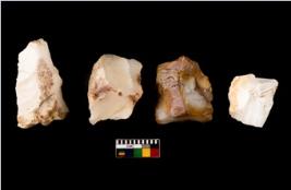 | Description / विवरण | There are n 4 of utilized worked cores. There are multidirectional irregular dominant scar pattern on both dorsal and ventral side. They have sharp edges. One of chalcedony and three of quartz. |