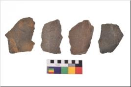 | Description / विवरण | There are n 4 utilized flake cores. There are multidirectional irregular scar pattern on both dorsal and ventral face of the flake cores. Two have flat base and two are tapering at one end. |
