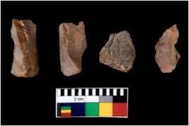 | Description / विवरण | There are n 4 of utilized worked cores. They show multidirectional irregular scar pattern. One is tapering at one end. |