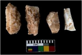 | Description / विवरण | There are n 4 of utilized worked cores.They show multidirectional irregular scar pattern. Some are tapering at one end. |