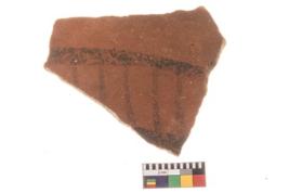 | Description / विवरण | Specimen of potsherd with traces of decorative geometric painting, Type Black on Red ware . |