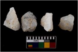 | Description / विवरण | There are n 4 flake cores. All of them are fully fluted flake cores without any trace of crested ridge flakes. Some are tapering at one end and some have flat base. |