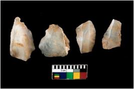 | Description / विवरण | There are n 4 of utilized worked cores.They show multidirectional irregular scar pattern. Some are tapering at one end and have flat base. |