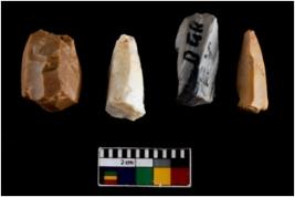 | Description / विवरण | There are n 4 of utilized worked cores. They show multidirectional irregular scar pattern. Two have flat base. Three of them are fully fluted whereas on has blunt edges. |