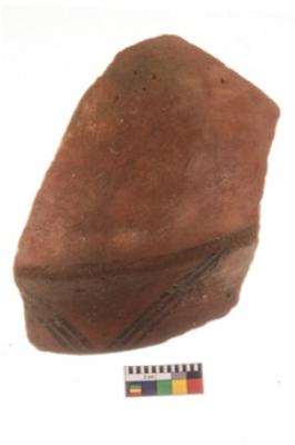 | Description / विवरण | Specimen of potsherd with traces of decorative geometric painting, Type Black on Red ware . |