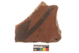 | Description / विवरण | Specimen of potsherd with decorative geometric painting, Type Black on Red ware . |