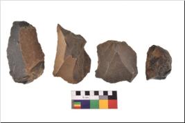 | Description / विवरण | There are n 4 utilized flake cores. There are multidirectional irregular scar pattern on both dorsal and ventral face of the flake cores. Two have flat base and two are tapering at one end. |