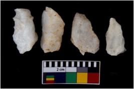 | Description / विवरण | There are n 4 flake cores. All of them are fully fluted flake cores without any trace of crested ridge flakes. Some are tapering at one end and some have sharp edges. |