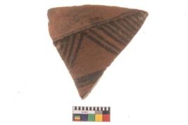 | Description / विवरण | Specimen of potsherd with decorative geometric painting, Type Black on Red ware . |