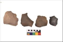 | Description / विवरण | There are n 4 utilized flake cores. There are multidirectional irregular scar pattern on both dorsal and ventral face of the flake cores. One has sharp edges and three have blunted edges. |
