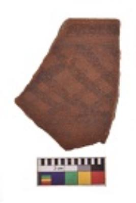 | Description / विवरण | Specimen of black on red ware with decorative geometric Two horizontal bands containing criss-cross pattern painting. |