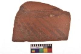 | Description / विवरण | Specimen of black on red ware with decorative geometric Outcurved lines painting. |
