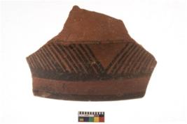 | Description / विवरण | Specimen of potsherd with decorative geometric painting, Type Black on Red ware . |