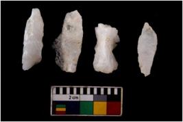 | Description / विवरण | There are n 4 flake cores. All of them are fully fluted flake cores without any trace of crested ridge flakes. Some are tapering at one end and some have sharp edges. |