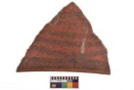 | Description / विवरण | Specimen of black on red ware with decorative geometric Its decorated with two horizontal bands with sets of triple arches painting. |
