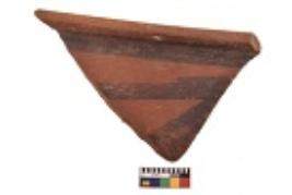 | Description / विवरण | Specimen of black on red ware with decorative geometric Two horizontal lines and one curved line painting. |