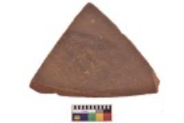 | Description / विवरण | Specimen of black on red ware with decorative geometric An hour glass pattern painting. |