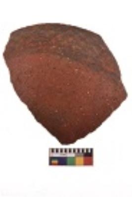 | Description / विवरण | Specimen of black on red ware with decorative geometric Two horizontal bands containing criss-cross pattern painting. |