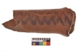 | Description / विवरण | Specimen of black on red ware with decorative geometric Interlocked zig-zig lines painting. |