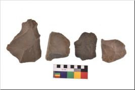 | Description / विवरण | There are n 4 utilized flake cores. There are multidirectional irregular scar pattern on both dorsal and ventral face of the flake cores. Two have sharp edges and two have blunted edges. |