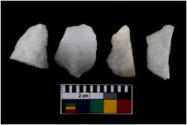 | Description / विवरण | There are n 4 flake cores. All of them are fully fluted flake cores without any trace of crested ridge flakes. Some are tapering at one end and some have sharp edges. |