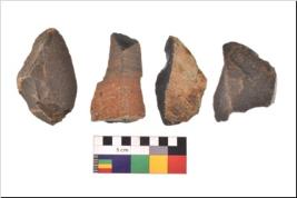 | Description / विवरण | There are n 4 utilized flake cores. There are multidirectional irregular scar pattern on both dorsal and ventral face of the flake cores. One has flat base and three are tapering at one end. |