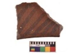 | Description / विवरण | Specimen of black on red ware with decorative geometric parallel lines painting. |