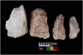 | Description / विवरण | There are n 4 flake cores. All of them are fully fluted flake cores without any trace of crested ridge flakes. Some are tapering at one end and some have sharp edges. |