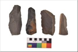 | Description / विवरण | There are n 4 utilized flake cores. There are multidirectional irregular scar pattern on both dorsal and ventral face of the flake cores. Three are tapering at one end and one has sharp edges. |