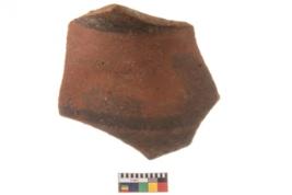 | Description / विवरण | Specimen of potsherd with traces of decorative geometric painting, Type Black on Red ware . |