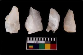 | Description / विवरण | There are n 4 flake cores. All of them are fully fluted flake cores without any trace of crested ridge flakes. Some are tapering at one end and some have sharp edges. |