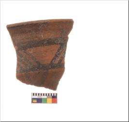 | Description / विवरण | Specimen of potsherd with decorative geometric painting, Type Black on Red ware . |