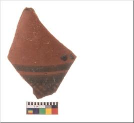 | Description / विवरण | Specimen of potsherd with decorative geometric painting, Type Black on Red ware . |