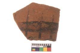 | Description / विवरण | Specimen of potsherd with decorative geometric painting, Type Black on Red ware . |