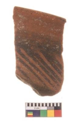| Description / विवरण | Specimen of potsherd with decorative geometric painting, Type Black on Red ware . |