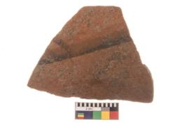 | Description / विवरण | Specimen of potsherd with traces of decorative geometric painting, Type Black on Red ware . |