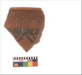 | Description / विवरण | Specimen of potsherd with decorative geometric painting, Type Black on Red ware . |