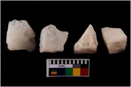 | Description / विवरण | There are n 4 flake cores. All of them are fully fluted flake cores without any trace of crested ridge flakes. Some have sharp edges and some have round edges. |