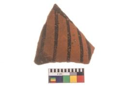| Description / विवरण | Specimen of potsherd with decorative geometric painting, Type Black on Red ware . |
