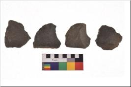 | Description / विवरण | There are n 4 utilized flake cores. There are multidirectional irregular scar pattern on both dorsal and ventral face of the flake cores. Two have sharp edges and two have blunted edges. |