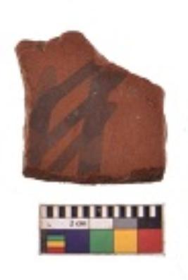 | Description / विवरण | Specimen of black on red ware with decorative geometric oblique lines set in two horizontal bands painting. |