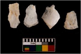 | Description / विवरण | There are n 4 flake cores. All of them are fully fluted flake cores without any trace of crested ridge flakes. Some are tapering at one end and some have sharp edges. |