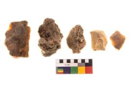 | Description / विवरण | There are n 05 of utilized worked flakes. They show multi-directional irregular scar pattern. Two are tapering on one end. |