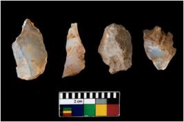 | Description / विवरण | There are n 4 of utilized worked cores. They show multidirectional irregular scar pattern. Two are tapering at one end and one has a flat base. |
