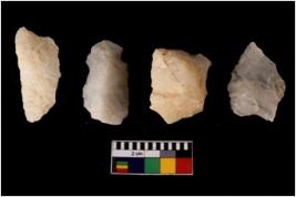 | Description / विवरण | There are n 4 flake cores. All of them are fully fluted flake cores without any trace of crested ridge flakes. Some are tapering at one end and some have sharp edges. |