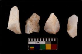 | Description / विवरण | There are n 4 flake cores. All of them are fully fluted flake cores without any trace of crested ridge flakes. Some are tapering at one end and some have sharp edges. |